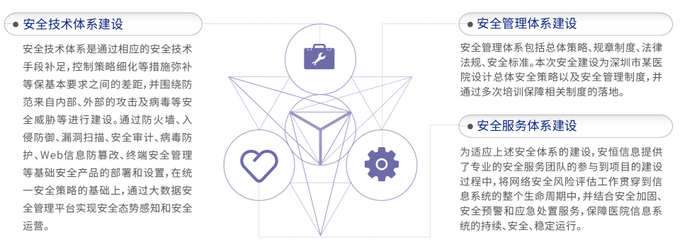 通過(guò)對(duì)安全技術(shù)體系,安全管理體系和安全運(yùn)行體系建設(shè),使深圳市某醫(yī)院的信息系統(tǒng)安全保障水平符合《信息安全等級(jí)保護(hù)建設(shè)指南》的要求,并通過(guò)等級(jí)保護(hù)測(cè)評(píng)