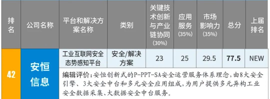 在第四屆通信產(chǎn)業(yè)榜“2021年工業(yè)互聯(lián)網(wǎng)50佳”評審中,安恒信息首次申請即成功入榜。這也是評測專家對安恒信息在工業(yè)互聯(lián)網(wǎng)安全方面付出的認可。