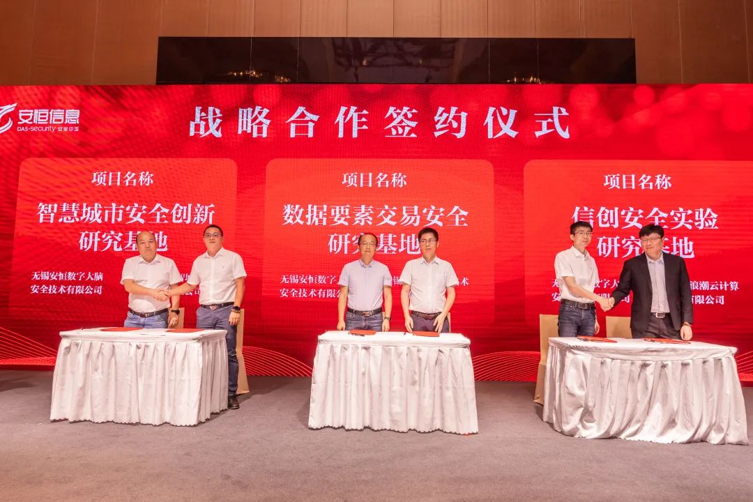 ▲ 安恒信息區(qū)域總部分別與中國聯(lián)合通信有限公司無錫分公司、中國移動通信集團江蘇有限公司無錫分公司、中國電信股份有限公司無錫分公司簽署戰(zhàn)略合作協(xié)議