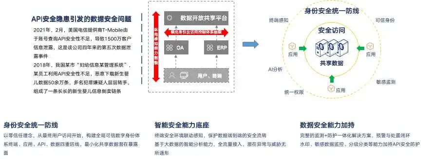 API負擔著承上啟下的作用,其后承載著海量的價值業(yè)務數據,隨著數據上云、集中化、共享趨勢,大量的數據需要通過API對應用程序提供服務,API的安全穩(wěn)定是支撐應用正常運轉的基石。啟用AiTrust零信任解決方案,落地API安全能力,能夠提供基于身份的接入控制管理,根據接入終端的環(huán)境、用戶的身份及行為、應用系統(tǒng)來賦予不同的API操作和訪問權限;能夠對用戶和管理員的操作、訪問、內容、文件等進行監(jiān)控和回溯,并且在重要事件發(fā)生時自動告警;并根據API參數中設定的數據格式和函數,通過正則或自定義規(guī)則來定義敏感字段,實時地對敏感數據進行監(jiān)測、預警、動態(tài)脫敏,以實現對數據傳輸的加密保護。