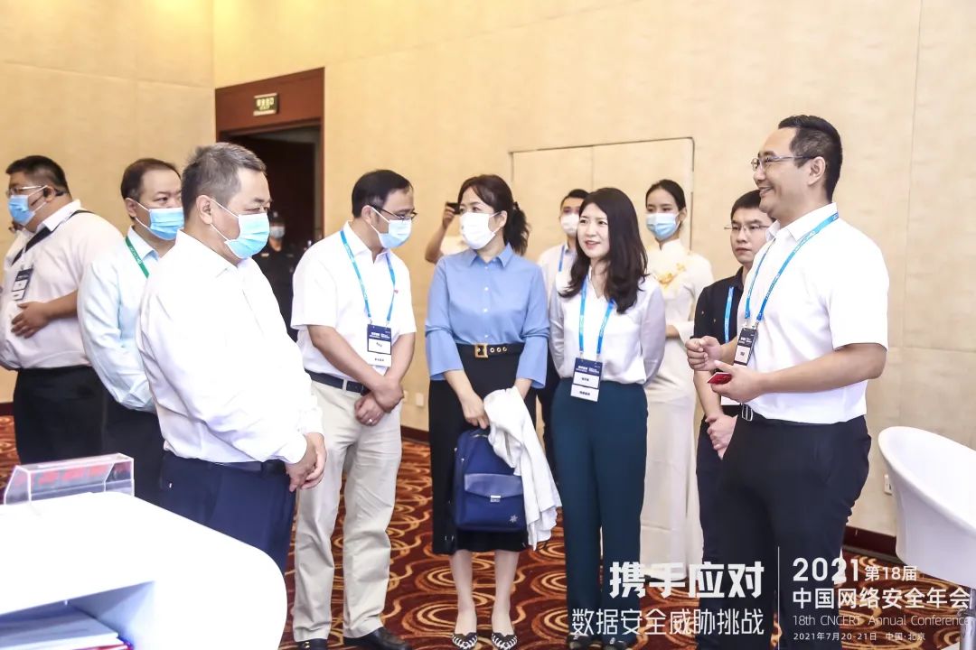 ▲工信部網(wǎng)絡(luò)安全管理局副局長陶青一行領(lǐng)導(dǎo)蒞臨安恒信息展位參觀指導(dǎo)