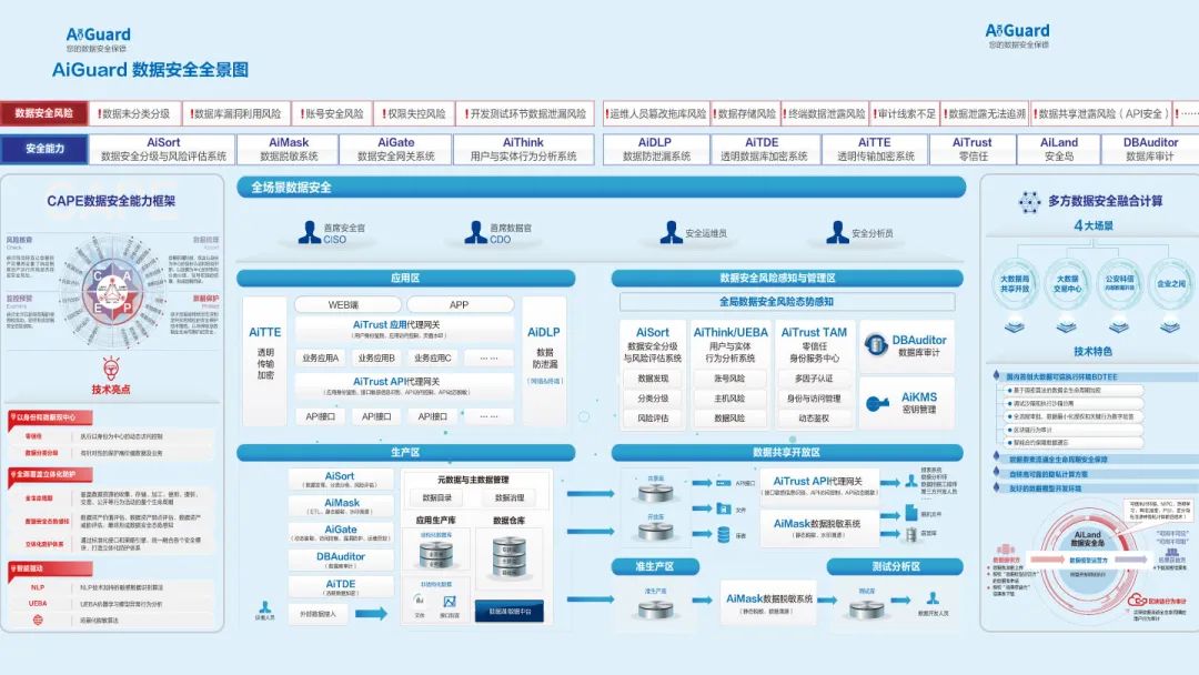 安恒信息AiGuard即實現(xiàn)了敏感數(shù)據(jù)安全防護的全生命周期過程全覆蓋,以風(fēng)險核查為起點,以數(shù)據(jù)梳理為基礎(chǔ),以數(shù)據(jù)保護為核心,以監(jiān)控預(yù)警作為支撐,最終形成全局數(shù)據(jù)安全風(fēng)險態(tài)勢感知。