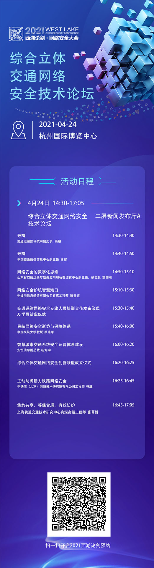 我們正向著交通強國穩(wěn)步前行,關于未來交通我們該如何建設?4月24日,西湖論劍·網(wǎng)絡安全大會敬請期待!