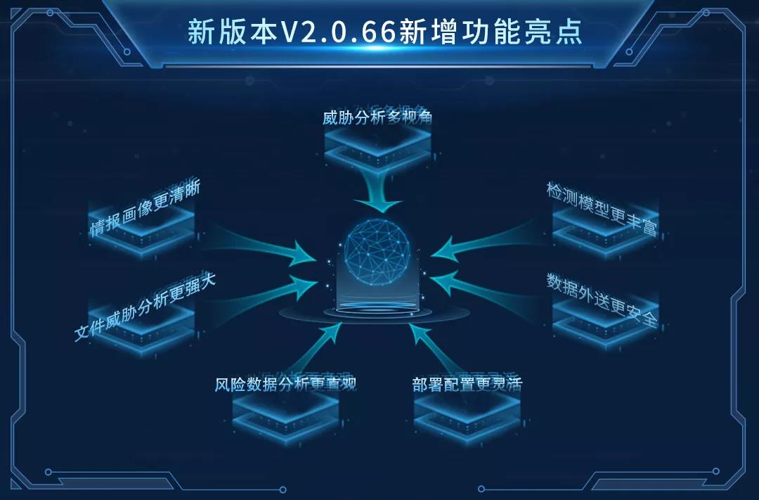 新版本完成了七大板塊優(yōu)化,顯著提升了多視角威脅分析、情報(bào)畫像、文件威脅檢測、風(fēng)險(xiǎn)數(shù)據(jù)分析、檢測模型、數(shù)據(jù)傳輸安全、分布式部署等能力,整體性能進(jìn)一步提升,人工交互體驗(yàn)也有局部優(yōu)化。