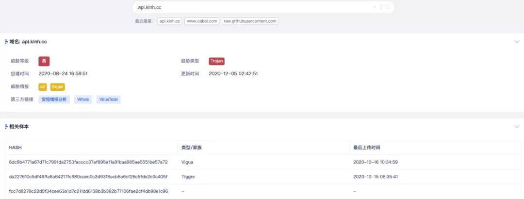 回連域名:自動(dòng)化提取惡意文件在沙箱中運(yùn)行時(shí)回連的域名和IP,便于威脅驗(yàn)證和情報(bào)孵化;