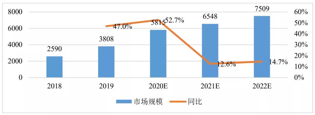 AIoT產(chǎn)業(yè)是多種技術融合,賦能各行業(yè)的產(chǎn)業(yè),整體市場潛在空間超十萬億元。艾瑞咨詢數(shù)據(jù)顯示,2019年中國AIoT產(chǎn)業(yè)總產(chǎn)值為3808億元,預計2020年達5815億元,同比增長52.7%,高增長主要得益于5G等新技術規(guī)劃化商用和AIoT應用在消費和公共事業(yè)等領域大規(guī)模落地。未來三年,在消費端和政策驅(qū)動端應用市場的繼續(xù)推動下,AIoT產(chǎn)業(yè)仍將保持高速增長。長期來看,產(chǎn)業(yè)驅(qū)動應用市場潛力巨大,將成為遠期增長點。