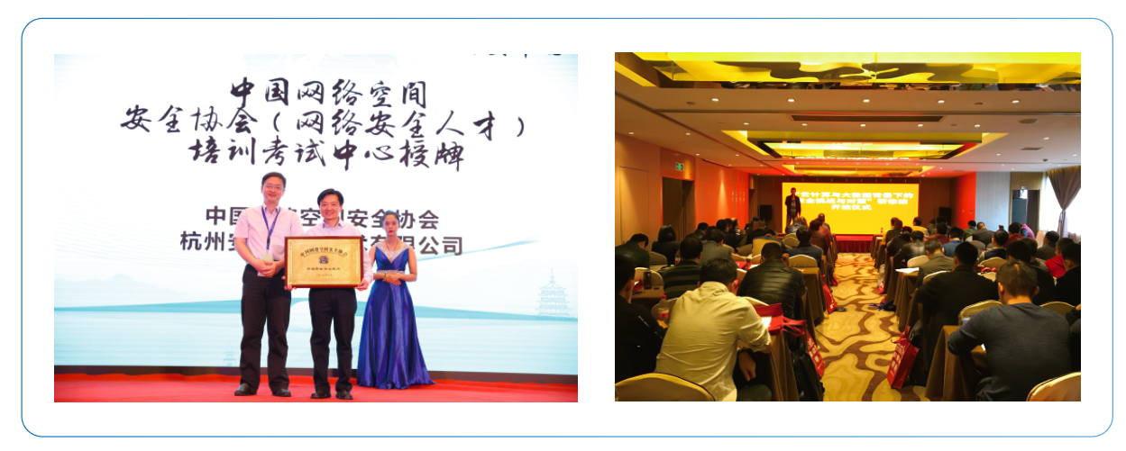 安恒信息憑借在安全領(lǐng)域多年的實(shí)踐經(jīng)驗(yàn)、充足的頂尖信息安全人才儲(chǔ)備以及各種大型信息安全項(xiàng)目的運(yùn)作和管理經(jīng)驗(yàn),獲得了中國(guó)信息安 全測(cè)評(píng)中心頒發(fā)的“授權(quán)培訓(xùn)機(jī)構(gòu)”的安全培訓(xùn)認(rèn)證資質(zhì)。?
