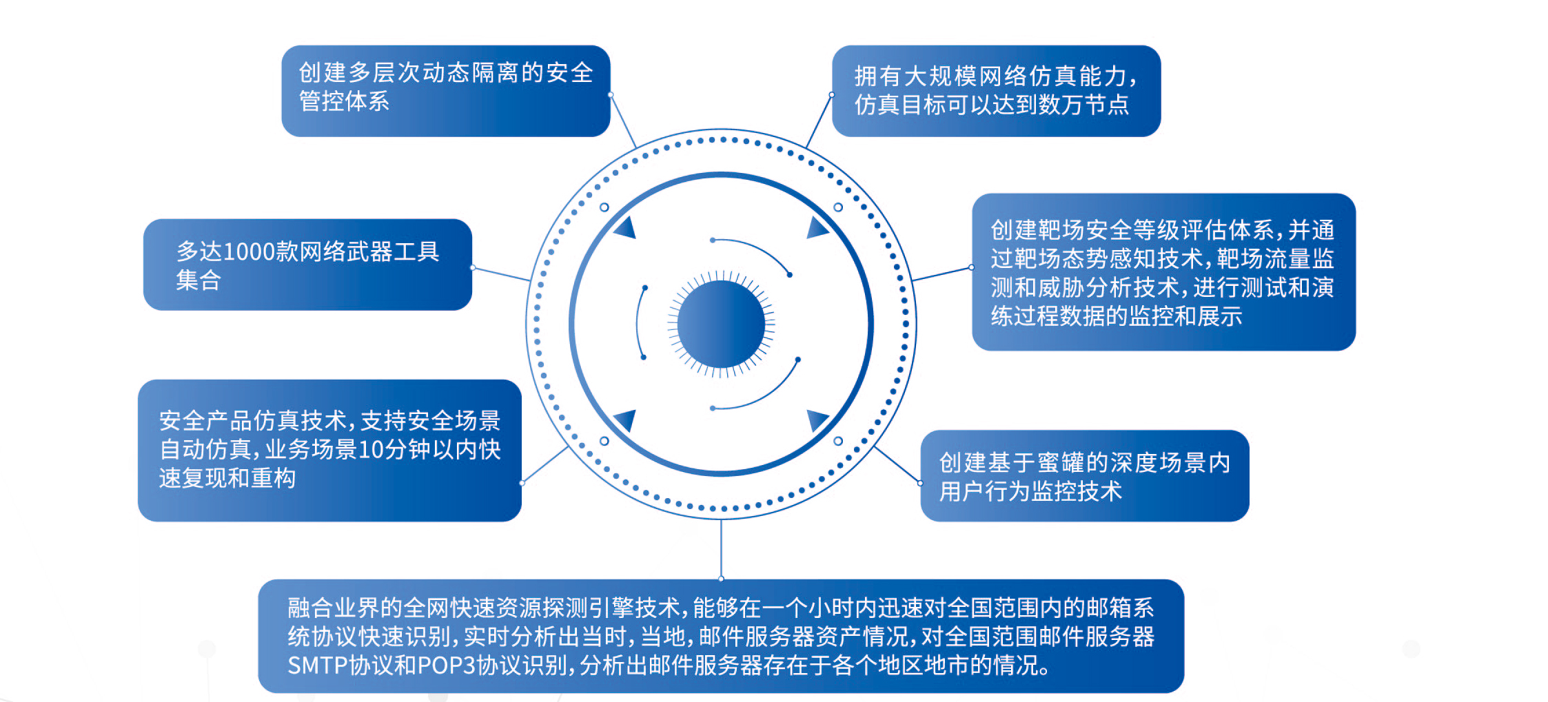 明鑒網(wǎng)絡(luò)空間靶場(chǎng)依托安恒多年安全產(chǎn)品研發(fā)和演練實(shí)戰(zhàn)經(jīng)驗(yàn),通過虛擬化技術(shù)、云計(jì)算技術(shù)、SDN技術(shù)、網(wǎng)絡(luò)編排等技術(shù)能夠便捷快速完成仿真場(chǎng)景的構(gòu)建 1:1復(fù)現(xiàn)用戶生產(chǎn)系統(tǒng)網(wǎng)絡(luò)環(huán)境。滿足用戶網(wǎng)絡(luò)安全研究、人才培養(yǎng)、效能評(píng)估、設(shè)備測(cè)試、安全評(píng)估、應(yīng)急演練等需求。網(wǎng)絡(luò)空間安全靶場(chǎng)利用數(shù)據(jù)采集、日志審計(jì)、流量監(jiān)控、態(tài)勢(shì)推演等尖端技術(shù),對(duì)靶場(chǎng)中的所有流量和行為過程進(jìn)行記錄和大數(shù)據(jù)分析并將過程和結(jié)果數(shù)據(jù)通過3D電子沙盤進(jìn)行全方位的展示,可協(xié)助客戶驗(yàn)證系統(tǒng)安全建設(shè)方案完善安全防御體系建設(shè)。