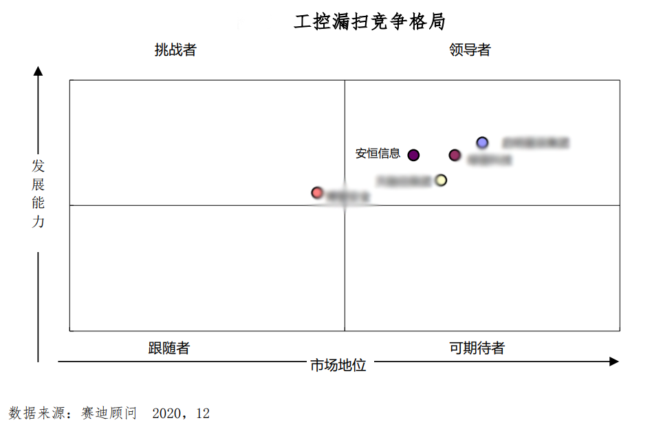 安恒信息進(jìn)入重點(diǎn)競爭格局模塊的產(chǎn)品主要為工業(yè)互聯(lián)網(wǎng)安全平臺、工控主機(jī)衛(wèi)士、工控安全監(jiān)測審計(jì)平臺和工業(yè)防火墻。并在工控漏洞掃描、工控安全審計(jì)產(chǎn)品、工控安全管理平臺、工控安全服務(wù)四項(xiàng)產(chǎn)品市場中均處于領(lǐng)導(dǎo)者地位。