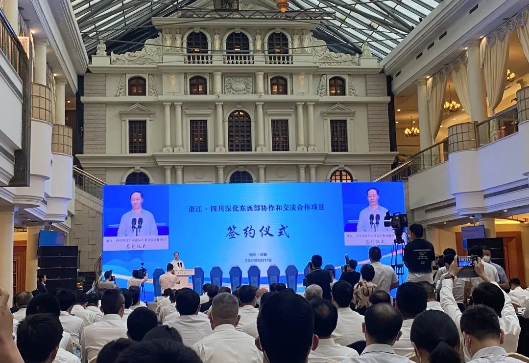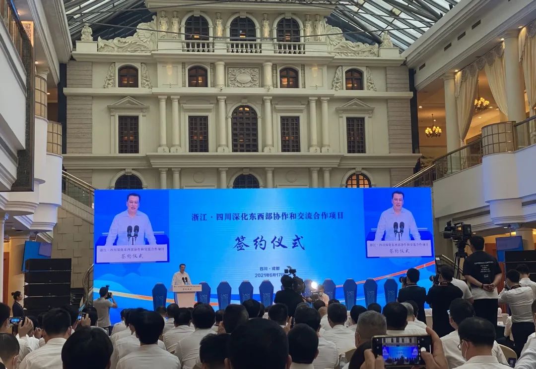 簽約儀式上,浙江省委常委、秘書長陳奕君主持了會議,浙江省委書記、省人大常委會主任袁家軍,四川省委書記、省人大常委會主任彭清華發(fā)表了講話。袁家軍一方面對四川長期以來給予浙江的支持和幫助表示感謝,另一方面指出東西部協(xié)作任務(wù)調(diào)整后,浙川關(guān)系更加密切,未來將通過多種方式努力推動浙川交流合作再上新臺階。彭清華在講話中對浙江及各有關(guān)方面長期以來給予四川的支持幫助表示感謝,并以此為新的起點,深化合作,推動浙川兩省高質(zhì)量發(fā)展的新局面。
