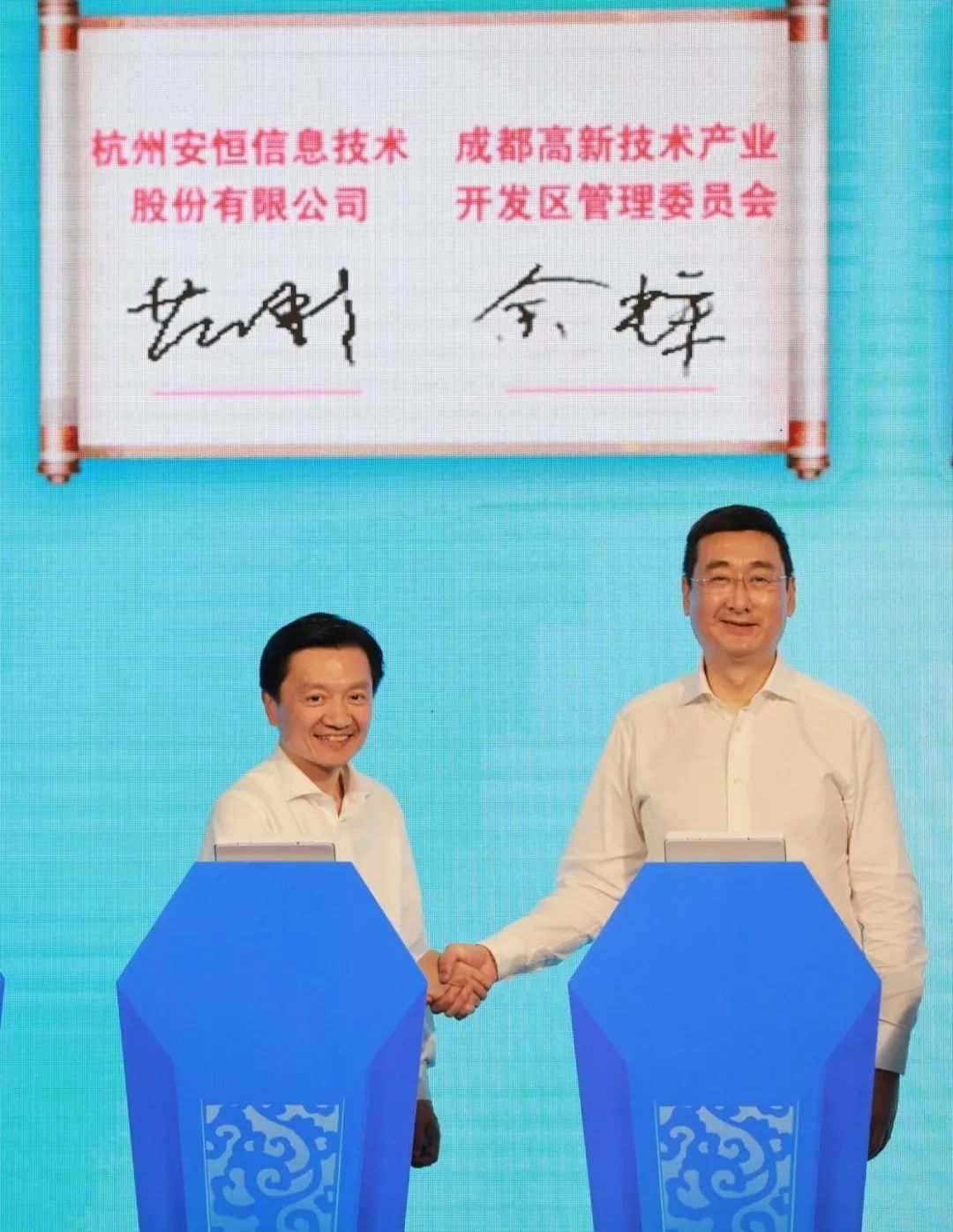 作為“數(shù)字化轉(zhuǎn)型”代表企業(yè)之一,安恒信息董事長范淵與成都高新區(qū)管委會主任余輝在各方領(lǐng)導(dǎo)的見證下簽署投資合作協(xié)議。