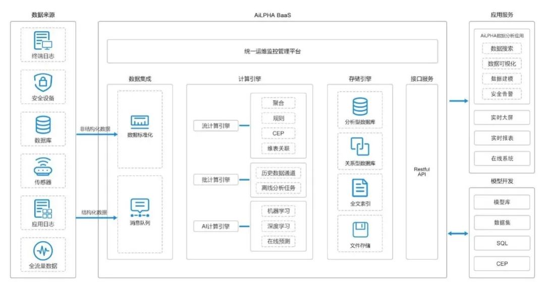 安恒AiLPHA大數(shù)據(jù)智能安全平臺(tái),是網(wǎng)絡(luò)安全大數(shù)據(jù)領(lǐng)域十分優(yōu)秀的產(chǎn)品和應(yīng)用解決方案,其內(nèi)部集成著:超大規(guī)模數(shù)據(jù)存查、大數(shù)據(jù)實(shí)時(shí)智能分析、威脅情報(bào)碰撞、全網(wǎng)流量處理、復(fù)雜事件實(shí)時(shí)處理等功能,更具備了流計(jì)算任務(wù)監(jiān)控管理、安全模型定制化開(kāi)發(fā)與編排管理、ES及kafka運(yùn)維監(jiān)控管理、語(yǔ)法統(tǒng)一與轉(zhuǎn)換功能。