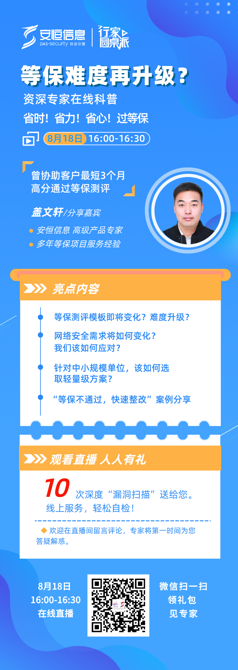直播預(yù)告 | 3個(gè)月通過等保測(cè)評(píng)?資深專家在線科普如何省事省力省心過等保