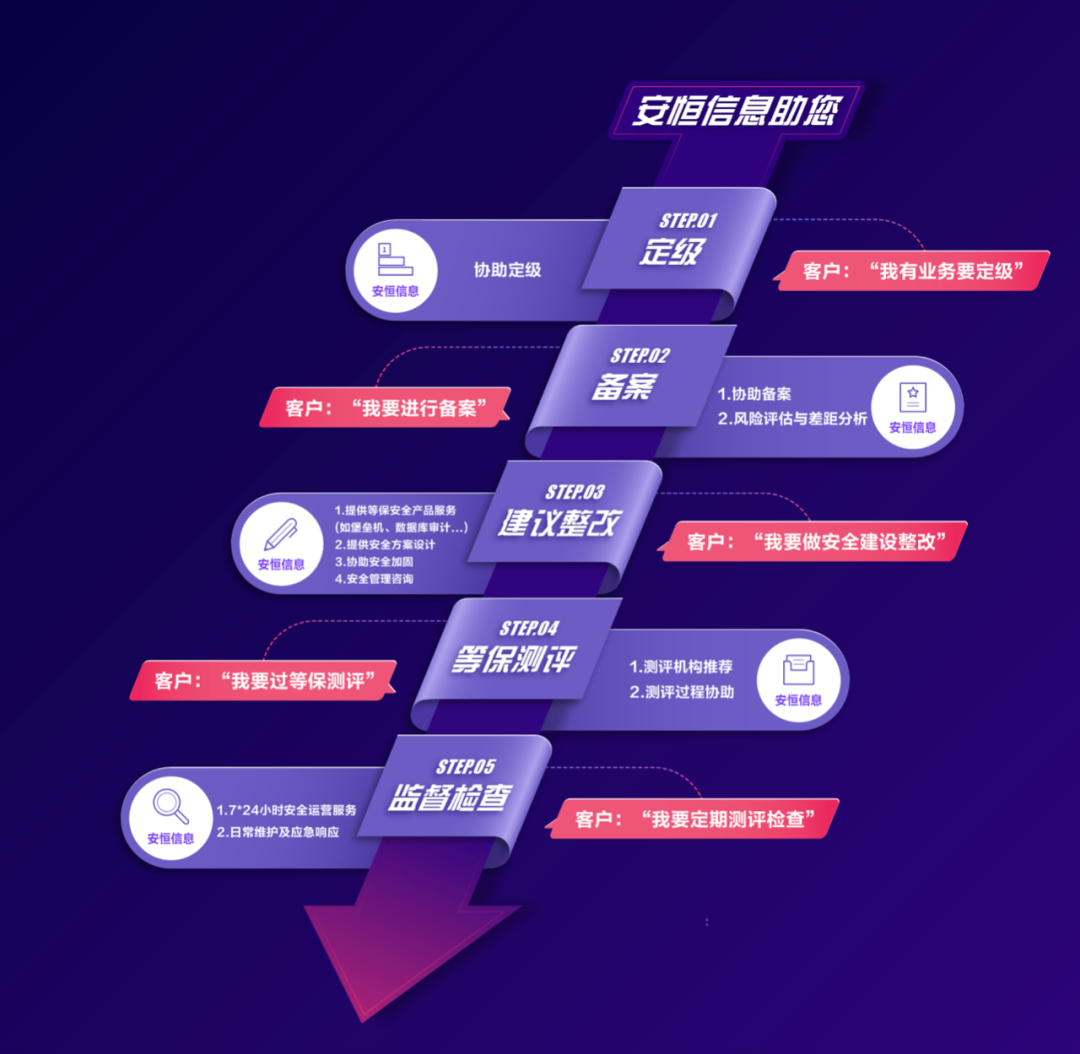 3、等保測評階段:安恒信息覆蓋全國的等保測評機(jī)構(gòu)生態(tài)網(wǎng)絡(luò),為您推薦專業(yè)的測評公司,快速過等保。
