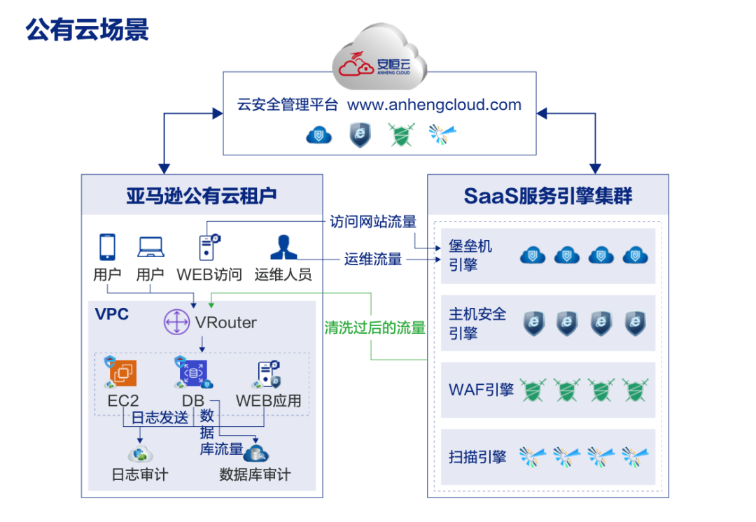 用戶采用亞馬遜云構(gòu)建了自己的業(yè)務(wù)系統(tǒng),需要對業(yè)務(wù)系統(tǒng)進(jìn)行統(tǒng)一的安全等保建設(shè)。安恒云采用云端共享SaaS服務(wù)+本地專享AMI結(jié)合的模式,幫助客戶快速構(gòu)建滿足等保2.0安全要求的防護(hù)體系。安恒云在線SaaS服務(wù)在全國部署了52個防護(hù)節(jié)點(diǎn),即開即用,輕松實(shí)現(xiàn)安全的統(tǒng)一建設(shè)、統(tǒng)一管理。