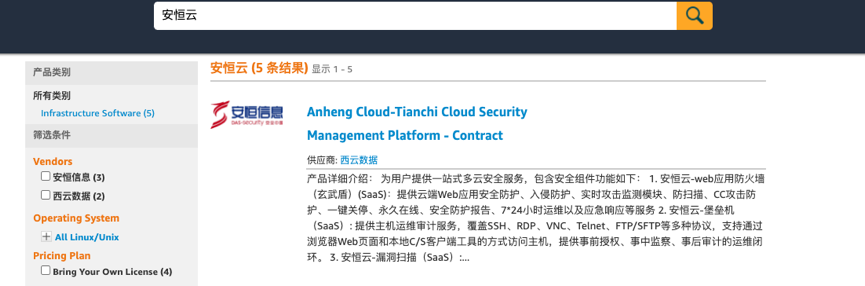 通過亞馬遜市場搜索【安恒云】即可查到安恒云在線SaaS訂閱服務(wù)。