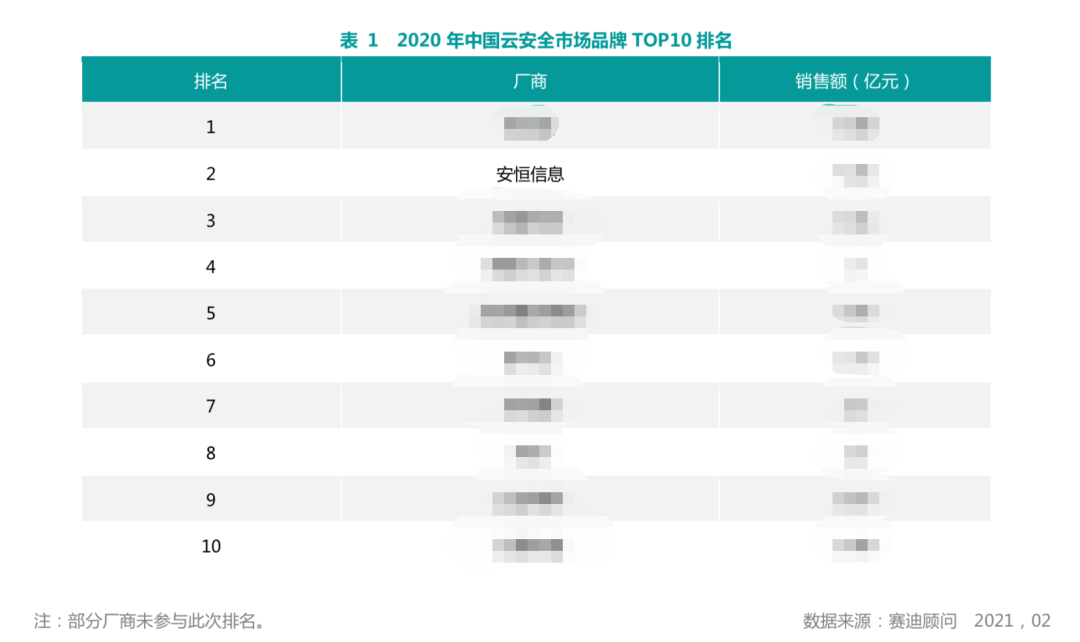 ▲ 2020年中國云安全市場,安恒信息排名第二