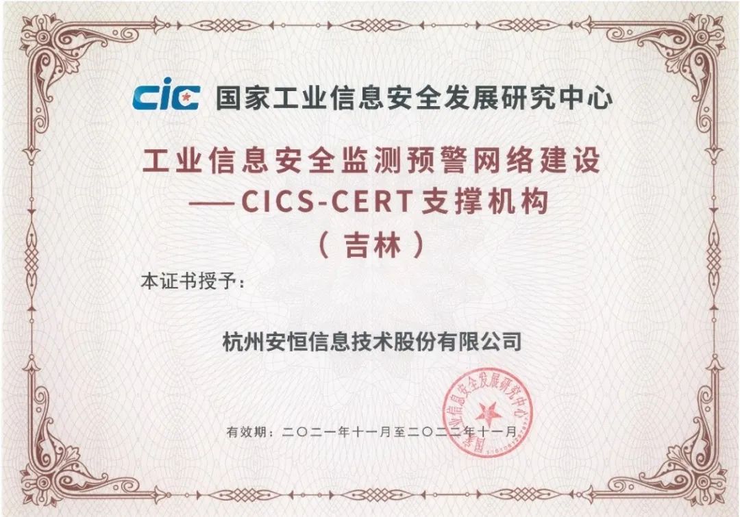 經(jīng)過層層評審環(huán)節(jié),安恒信息在本年度大會上成功入選2021至2022年度吉林省的國家工業(yè)信息安全監(jiān)測預(yù)警網(wǎng)絡(luò)建設(shè)——CICS-CERT支撐單位。作為支撐單位,安恒信息將在吉林省開展省內(nèi)工業(yè)信息安全監(jiān)測預(yù)警支撐工作,積極參與網(wǎng)絡(luò)節(jié)點平臺的研發(fā)、部署、運營等工作,為地方提供必要的人員和技術(shù)支持,并配合國家工業(yè)信息安全發(fā)展研究中心開展風(fēng)險研判、處置驗證等工作,以合作方式共建國家工業(yè)信息安全監(jiān)測預(yù)警網(wǎng)絡(luò)。
