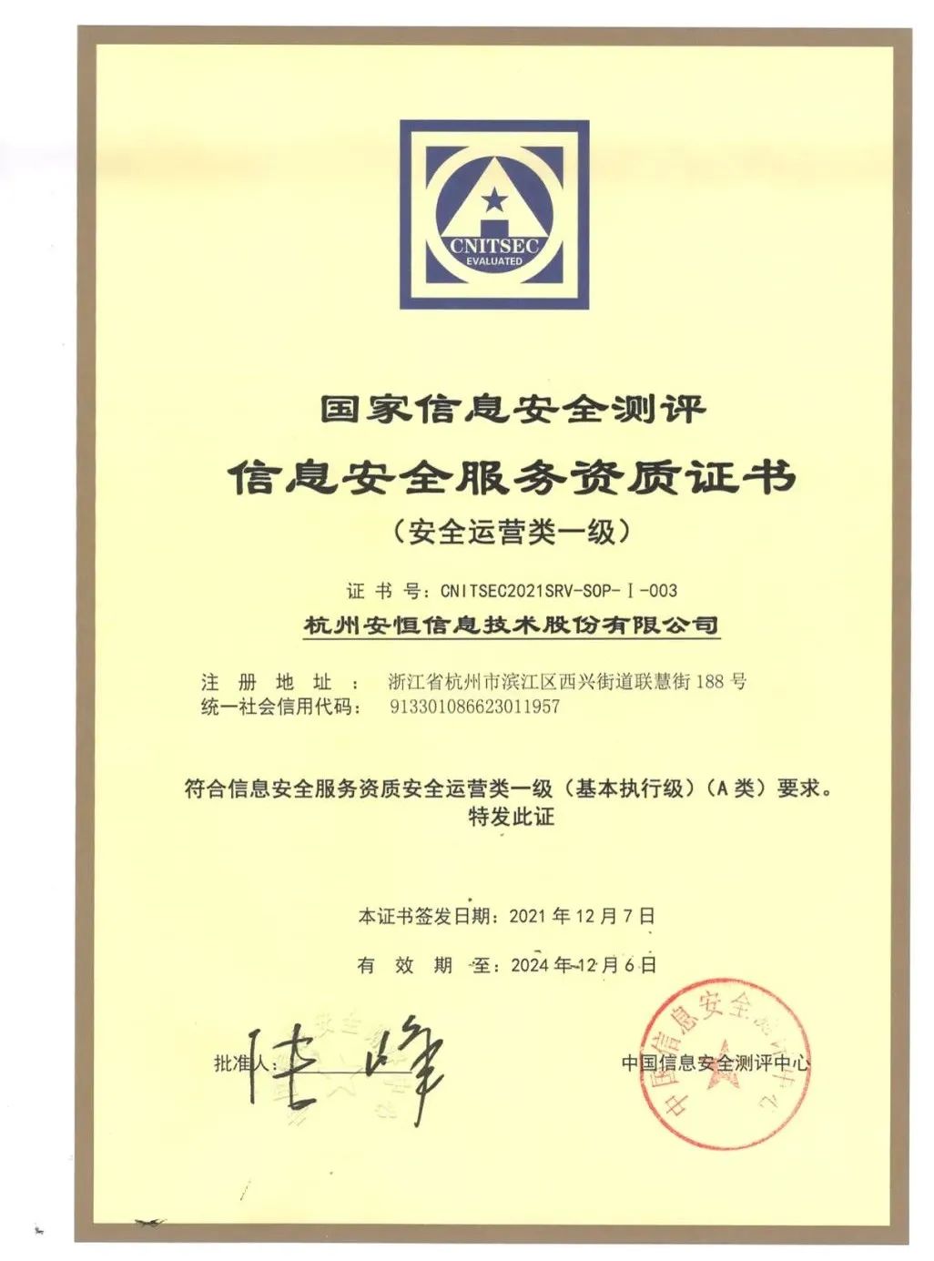 12月14日,安恒信息成為首批獲得國家信息安全服務資質(zhì)安全運營類一級的網(wǎng)絡(luò)安全企業(yè)。