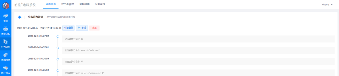 無(wú)論攻擊者利用何種攻擊手法,都將一一被記錄于迷網(wǎng)“攻擊行為詳情”頁(yè)面中,安全研究人員用于分析當(dāng)前攻擊者攻擊意圖、攻擊方法,進(jìn)而進(jìn)行防范,保護(hù)真實(shí)資產(chǎn)。