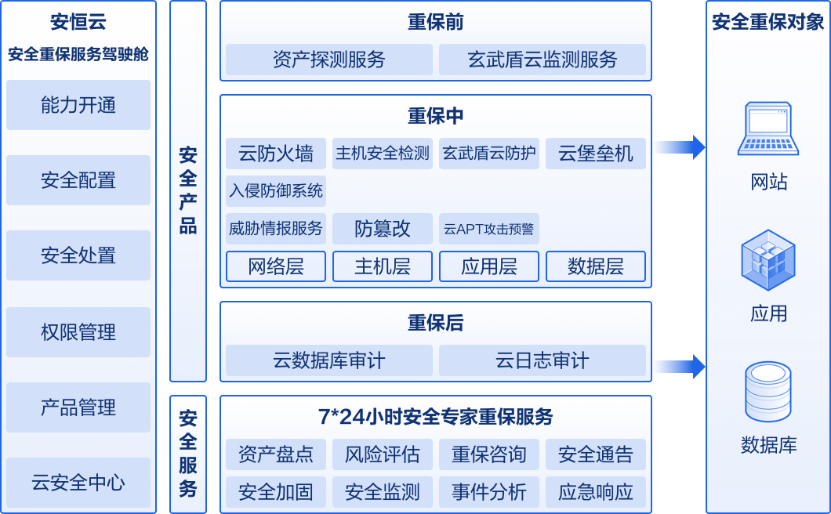 針對互聯(lián)網(wǎng)資產(chǎn)暴露面風(fēng)險,重保服務(wù)方案立足于資產(chǎn)梳理、安全監(jiān)測、安全防護三個維度進行“事前”、“事中”、“事后”全生命周期安全閉環(huán)管理,為用戶的互聯(lián)網(wǎng)業(yè)務(wù)保駕護航,避免出現(xiàn)各種安全事故,保障重保期間互聯(lián)網(wǎng)業(yè)務(wù)零事故。