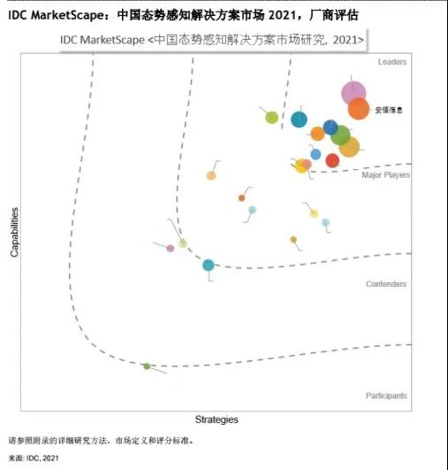 據(jù)《IDC MarketScape: 中國態(tài)勢(shì)感知解決方案市場(chǎng)2021,廠商評(píng)估》報(bào)告繪制