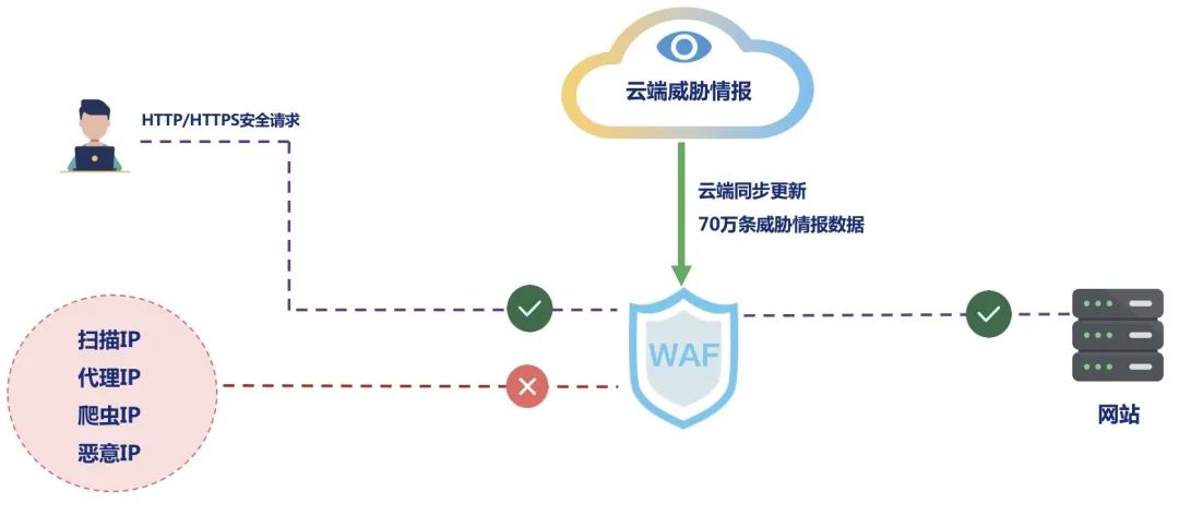 新一代智能WAF與云端威脅情報(bào)聯(lián)動(dòng),威脅情報(bào)數(shù)據(jù)實(shí)時(shí)更新,主動(dòng)發(fā)現(xiàn)可疑訪問(wèn)行為,快速檢測(cè)僵尸IP、掃描IP、肉雞IP等惡意IP等對(duì)業(yè)務(wù)系統(tǒng)的可疑訪問(wèn)行為。幫助客戶快速定位潛在威脅。