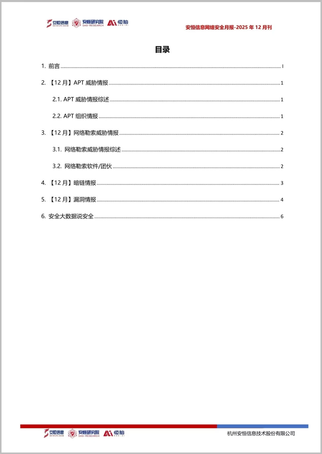 2025年12月《安恒信息網(wǎng)絡(luò)安全月報(bào)》