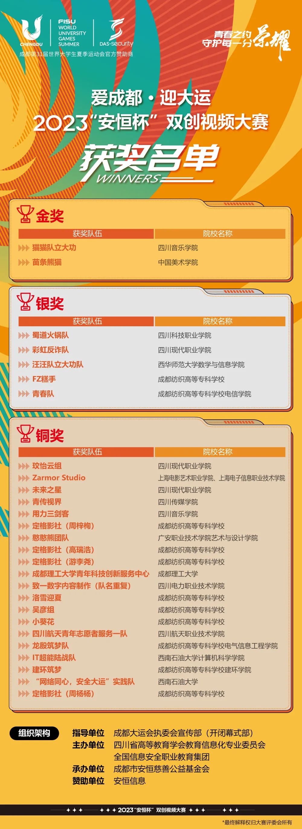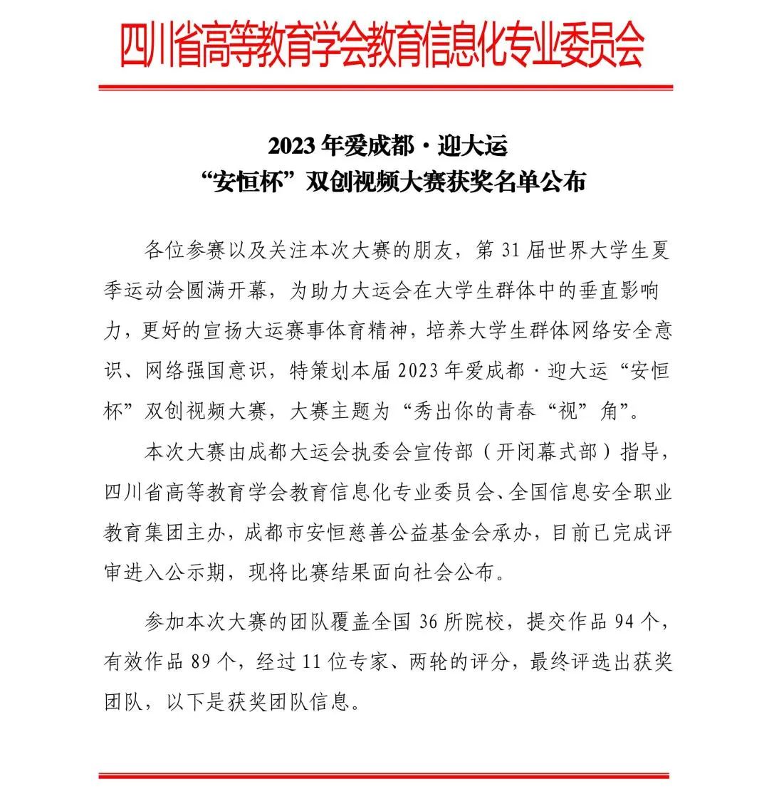 愛成都·迎大運(yùn)2023年“安恒杯”雙創(chuàng)視頻大賽獲獎(jiǎng)名單公布