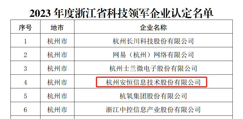 安恒信息榮獲2023年度“浙江省科技領(lǐng)軍企業(yè)”稱號