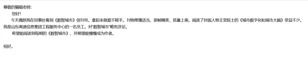 隨著《數(shù)智城市》期刊創(chuàng)刊和第二期全面發(fā)布,我們陸續(xù)收到了各方發(fā)來的寶貴反饋郵件,有客戶的表揚、有用戶的索閱、也有專家希望投稿貢獻(xiàn)智識,效果好到我們必須保質(zhì)保量、快馬加鞭趕制第三期。