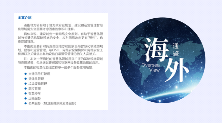 本期特收錄獨家翻譯的《網(wǎng)絡(luò)專家眼中未來智慧城市安全指南》,內(nèi)容由英國政府通信總部下屬英國國家網(wǎng)絡(luò)安全中心(NCSC)發(fā)布,從海外視角了解未來智慧城市的規(guī)劃思路,吸收先進(jìn)經(jīng)驗,因地制宜,更好地投身智慧城市的安全建設(shè)中去。