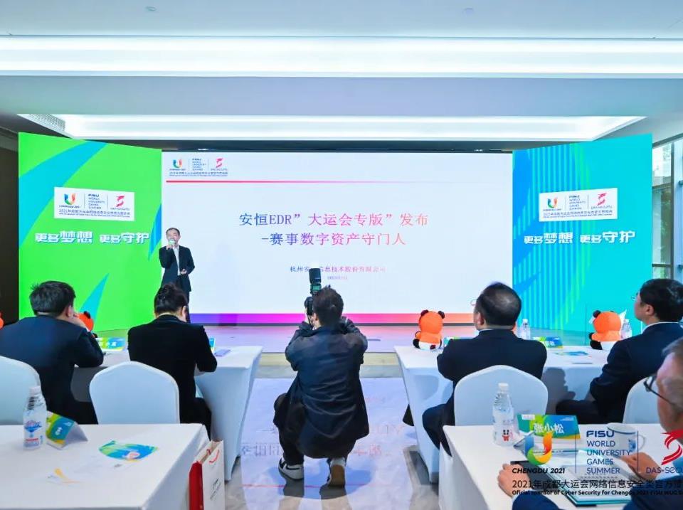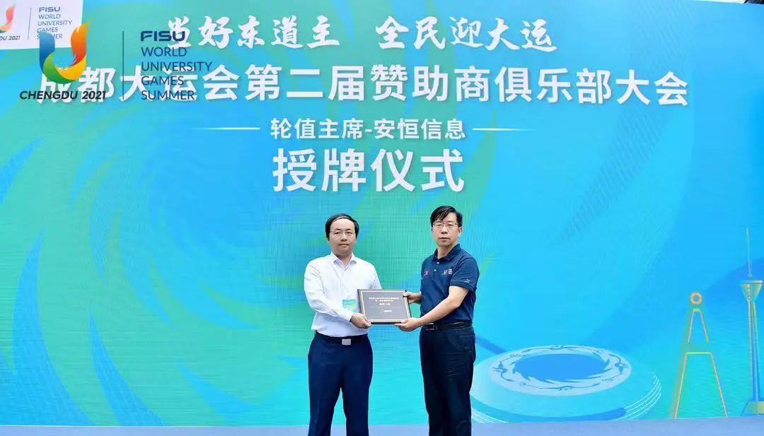 成都大運會執(zhí)委會相關(guān)負(fù)責(zé)人為安恒信息授牌,安恒信息作為贊助企業(yè)優(yōu)秀代表,正式成為第二屆贊助商俱樂部輪值主席。