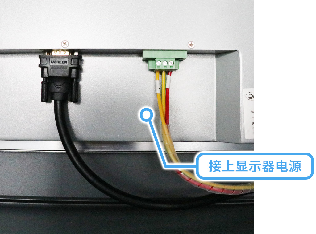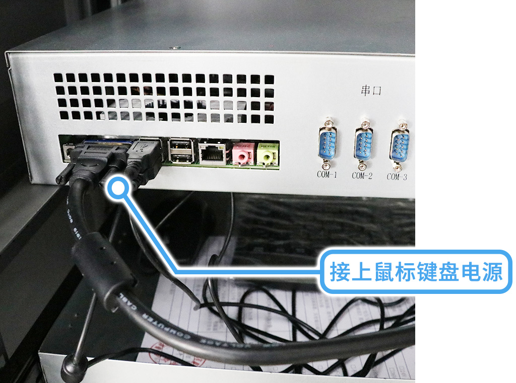 翻轉(zhuǎn)到主機背面,打開后接上顯示器電源,鼠標鍵盤電源;